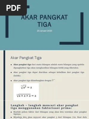 Menentukan hasil penarikan akar pangkat tiga, 24 bab iii pengukuran a. Faktorisasi prima bilangan 3.375 dicari menggunakan pohon faktor seperti di bawah ini. Akar pangkat 3 merupakan kebalikan dari perpangkatan 3. =³√13.824 =24 24 * 24 = 576 * 24 = 13.824 jadi hasil nya 24. Perhatikan bilangan kubik dasar dan akar pangkat tiga dari bilangan kubik dasar berikut.