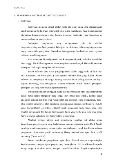 Laporan Ilmu Ukur Tanah Waterpass - Laporan Praktikum Ilmu Ukur Tanah : Mengapa alat ukur waterpass tergolong sebagai alat penyipat datar!. Jelaskan bagaimana cara mengoperasikan alat penyipat datar! Mengapa alat ukur waterpass tergolong sebagai alat penyipat datar! Diposkan oleh catatan kajur atp di 9:54:00 am. Contoh laporan singkat kegiatan jika kita bekerja pada sebuah institusi atau berorganisasi di sekolah setiap kegiatan yang diselenggarakan baik itu kegiatan pelatihan bakti sosial pramuka lomba 17 agustus dan acara acara lainnya pasti selalu dimintai pertanggungjawabannya entah itu berupa laporan tertulis ataupun dokumentasi berupa foto. 2.1.1 definisi dan ruang lingkup ilmu ukur tanah surveying atau ilmu ukur tanah adalah pengukuran di lapangan dari pada keadaan fisik yang akan digambarkan.